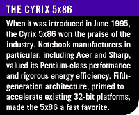 Market readiness and high performance weren't the only powerful attractions of the Cyrix 5x86 processor. Stringent power management -- the kind of power management that can double battery life -- was another defining characteristic. With the 5x86 processor, Cyrix offered a CPU that delivered fifth-generation performance at less than half the power consumption of competing alternatives while fitting into existing system designs -- a winning combination for PC manufacturers, particularly makers of notebooks and other portable systems.