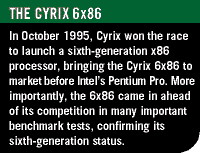 As a result, Cyrix is now a viable supplier of high-end x86 compatible processors. With products that exceed the performance levels of Intel's best, Cyrix is the first company that can legitimately challenge the market leader on the basis of performance.
