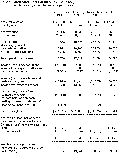 Cyrix Reports Second Quarter Results Richardson, Texas -- July 18, 1996 -- Cyrix Corp. (NASDAQ: CYRX), a leading supplier of high-performance processors, today reported revenues for the quarter ended June 30, 1996 of $27.1 million, down 46 percent from the $50.2 million reported in the same period last year. Revenues for the first six months of 1996 were $78.7 million, down from $135.4 million in the same period last year. The Company recorded a net loss of $16.4 million for the quarter ended June 30, 1996, compared to net income of $7.5 million for the same period last year. The Company recorded a net loss of $14.5 in the first six months of 1996, compared to net income of $25 million in the first half of 1995. "Looking beyond the second quarter, Cyrix’s largest challenge is to grow our customer base," said Jerry Rogers, Cyrix president and chief executive officer. "The 6x86 processor is a very competitive product in today’s marketplace, outperforming equivalent Pentium® and Pentium Pro processors at a significant discount. In addition, the product roadmap to bring us to an MMX-compatible future is sound." "We know that we must drive this value proposition as aggressively as possible in order to obtain market share for the company, success for the product line and value for the shareholder," Rogers said. "While we are unlikely to turn a profit in the third quarter, the survival of competition and product innovation in the x86 marketplace demand unyielding focus and execution." Cyrix Corporation, headquartered in Richardson, Texas, is a leading supplier of high-performance processors to the personal computer industry. Founded in 1988, the Company designs, manufactures and markets innovative, x86 software-compatible processors for the desktop and mobile computer markets. Cyrix is a publicly-held company traded on NASDAQ. Forward-looking statements involve risks relative to market demand and acceptance, the impact of changing economic conditions, product introductions, the maintanance of sufficient cash flow, reliance on third-parties, the impact of market peers and their products as well as risks concerning future technology and others detailed in the Company’s Securities and Exchange Commission filings. These filings can be obtained by contacting Cyrix Investor Relations.