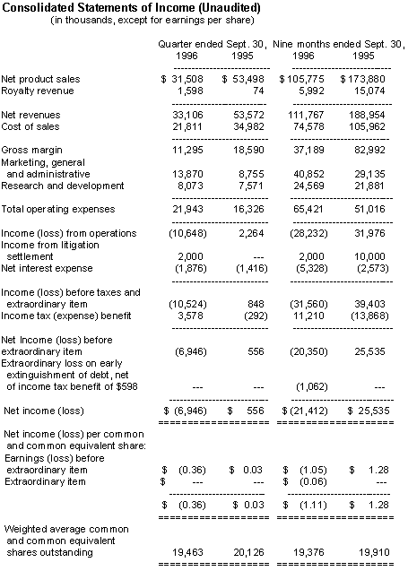 Cyrix Reports Third Quarter Results Richardson, Texas -- October 17, 1996 -- Cyrix Corp. (NASDAQ: CYRX), a leading supplier of high-performance processors, today reported revenues for the quarter ended September 30, 1996 of $33.1 million, up from the prior quarter revenues of $27.1 million and down 38 percent from the $53.6 million reported in the same period last year. The Company recorded a net loss of $6.9 million for the quarter ended September 30, 1996 or a loss per share of $0.36, compared with net income of $.6 million or an earnings per share of $0.03 for the same period last year. Revenues for the first nine months of 1996 were $111.8 million, down from $189 million in the same period last year. The Company recorded a net loss of $21.4 million or $1.11 per share in the first nine months of 1996, compared with net income of $25.5 million or $1.28 per share in the prior nine months of 1995. During the third quarter, the last of the Intel litigation was finally concluded. Intel had until July to file an appeal of the Federal Circuit Court of Appeal’s March 5, 1996 opinion that IBM and SGS-Thomson using its "have made" rights were licensed by Intel to make microprocessors for Cyrix. Intel did not file an appeal and, as a result, under the earlier Intel settlement agreement paid Cyrix $2 million. Also, on September 26, 1996, the U.S. District Court in Dallas entered a judgment dismissing the securities class action lawsuit against Cyrix and certain of its officers. The plaintiffs did not file an appeal and the decision is now final. "We made good progress in the third quarter in winning new customers and putting several legal matters behind us," said Jerry Rogers, Cyrix president and chief executive officer. "Going forward, we will continue to enhance the value proposition of the 6x86 product line while controlling our operating expenses," Rogers said. Cyrix Corporation Any forward-looking statements in the above release involve risks and uncertainties which could cause actual results to differ from the present anticipated results. These risks and uncertainties include but are not limited to the following: market demand and acceptance of our microprocessor products; the impact of changing economic conditions; product introductions; the verification of our microprocessor’s compatibility with industry-standard hardware and software; the maintenance of sufficient cash flow, reliance on third-parties, the impact of market peers and their products as well as risks concerning future technology and others detailed in the Company’s Securities and Exchange Commission filings. These filings can be obtained by contacting Cyrix Investor Relations.